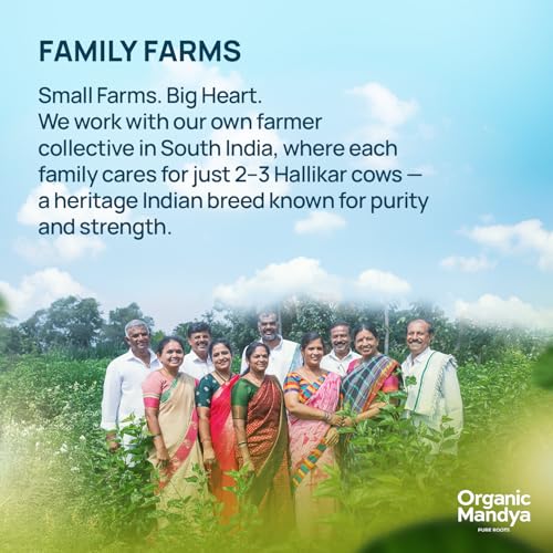 Organic Mandya – Grass Fed Ghee, Clarified Butter, Pasture Raised, Stress-Free Cattle, Lactose Free, Ethically Sourced | Fermented A2 Ghee (16 oz / 475 ml)