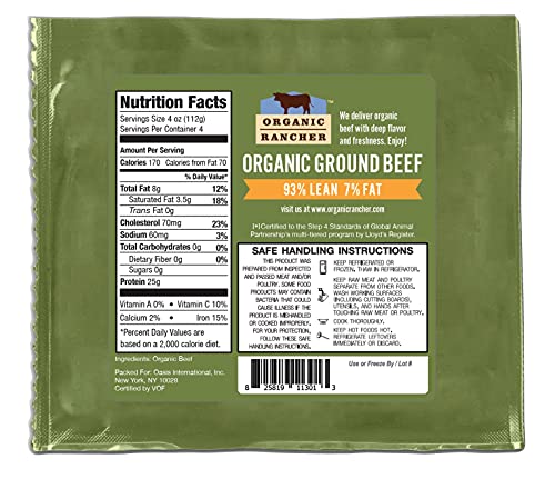 Specification: Organic Rancher Organic Ground Beef 93% Lean/7% Fat, 16 Oz