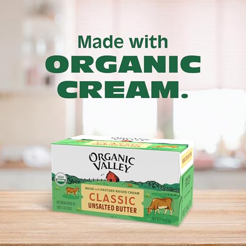 Organic Valley® Organic Unsalted Butter is churned in small batches from pasture-raised cows’ cream, delivering a silky-smooth texture and clean, creamy flavor that lets your ingredients shine. With no added salt, it’s the butter of choice for baking precision and culinary flexibility. Ideal for recipes where flavor control matters—like flaky pie crusts, rich pastries, homemade sauces, or browned butter dishes—this unsalted organic butter is a pantry essential. From laminated doughs to buttered veggies, every stick starts on the pasture and ends in pure delight.