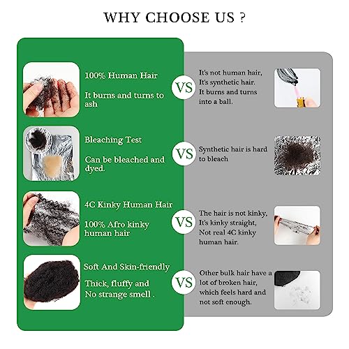 【100% Soft human hair】 10inch Afro kiny human hair bulk for dreadlocks. Natural look, soft and skin-friendly, Exactly match your own hair’s texture. Can be bleached and dyed.