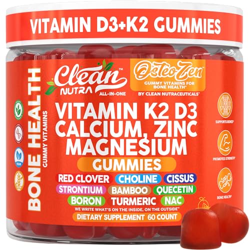 Specification: Osteo Zen Vitamin D3 K2 Gummies Bone Support Magnesium Zinc Calcium Quercetin Boron Choline Red Clover Turmeric 60 Count Tangerine Tang Flavor for Skeletal Strength & Resilience by Clean Nutra