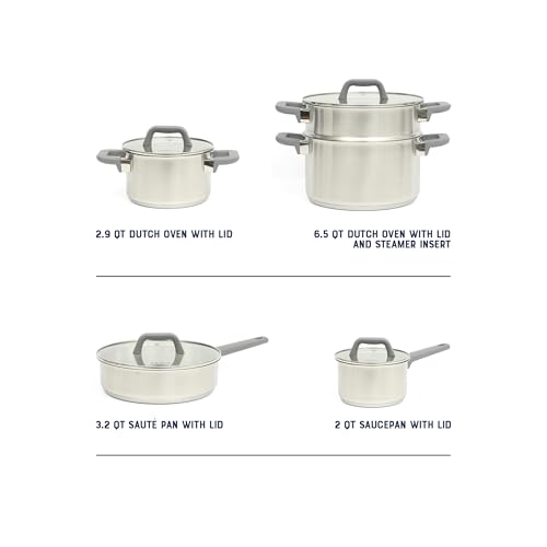 Specification: Oster Beauford 9-Piece Stainless Steel 5-Ply Encapsulated Base Cookware Set – Non-Toxic, Induction Compatible Pots and Pans with Stay-Cool Handles – Dishwasher Safe