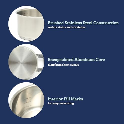 BRUSHED STAINLESS STEEL COOKWARE: Brushed exterior resists stains and scratches from everyday cooking and constant washing. Ideal for quick boiling, slow simmering and high-heat searing, each pot performs exceptionally as it is best at even heating and cooking.