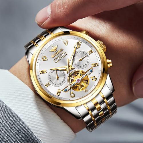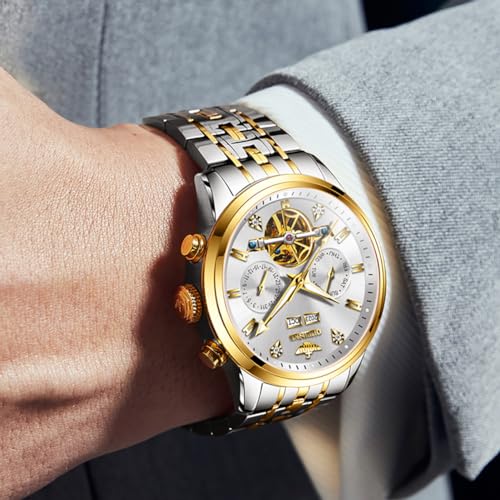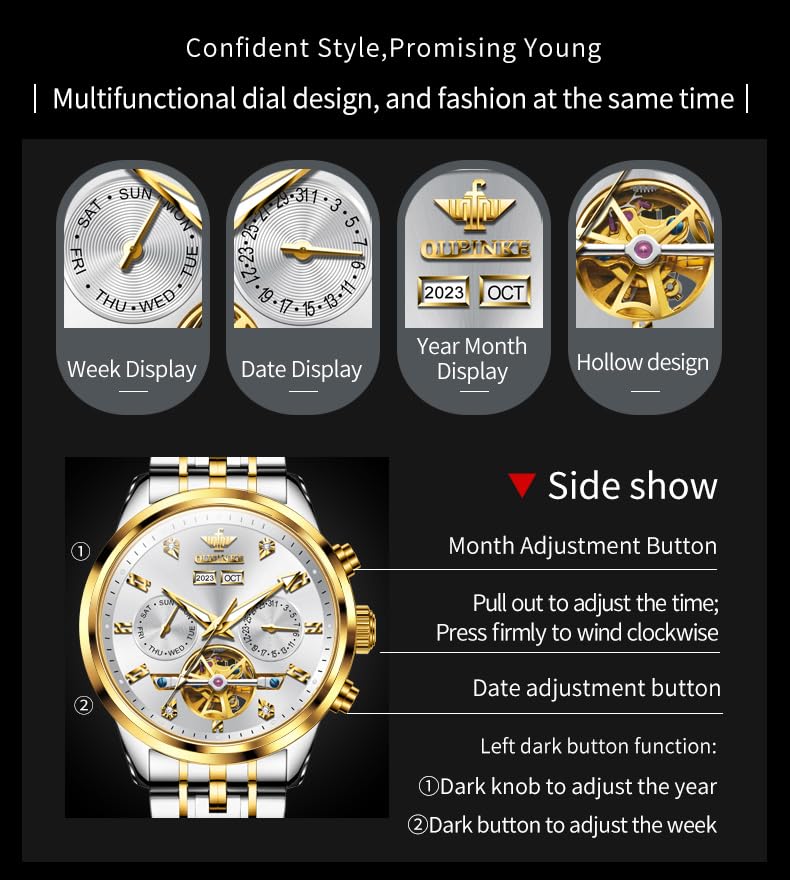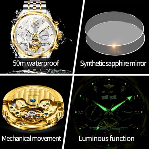 Specification: OUPINKE Mens Automatic Watches Mechanical Skeleton Luxury Dress Watch for Man Tungsten Steel Waterproof Luminous Calendar Wristwatch
