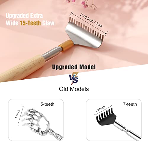 Oversize Back Scratcher Extendable, Backscratchers for Men Women with Wooden Handle Steel Massage Roller Wider Claw, Sturdy Manual Body Scratcher Massager Extend Up to 62CM