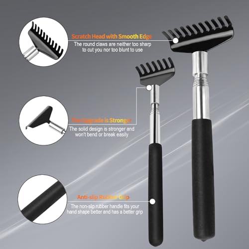HIGH-QUALITY MATERIAL: Our extendable back scratcher is made from stainless steel that will never rust, keeping it brand new. The claw part is hard to bend, break, or deteriorate after a long time of use. The anti-slip handle is built from soft rubber and fits perfectly in your hand.