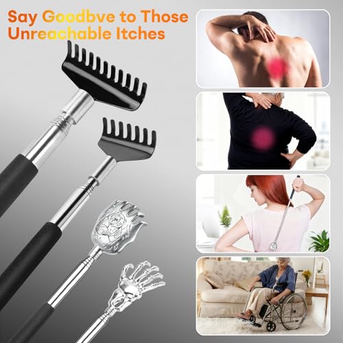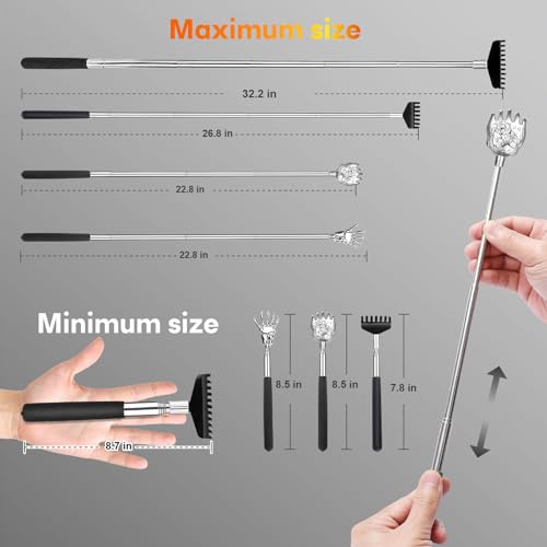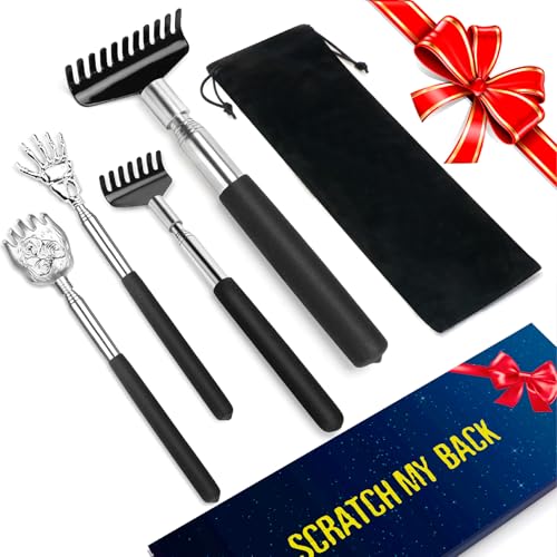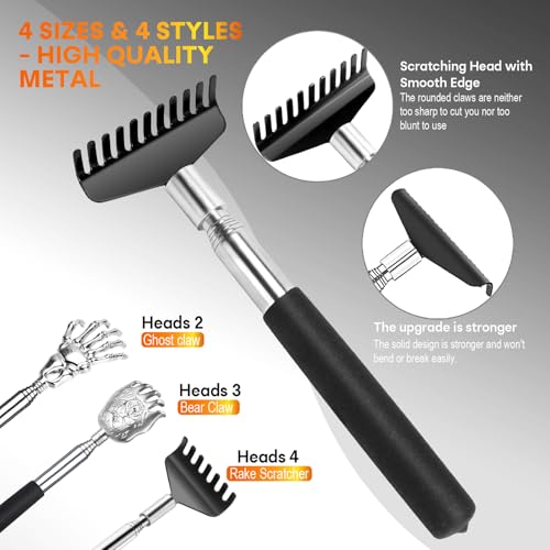 Specification: Oversized Back Scratcher Gift Set, 4 Pack Portable Extendable Stainless Steel Telescoping Massage Tool, Gift/Stocking Stuffers for Men Women