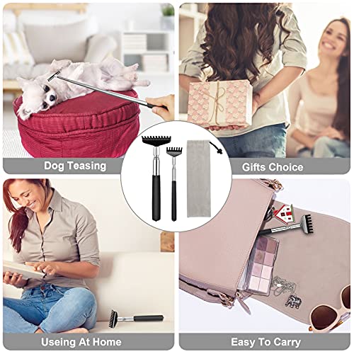 YOU WILL RECEIVE: One normal size –Stainless steel back scratcher with telescoping handle, 7.87 inch retracted and 26.77 inch when fully extended.One oversized –Stainless steel back scratcher with telescoping handle, 8.07 inch retracted, and 31.5 inches when fully extended.One velvet carrying bag.