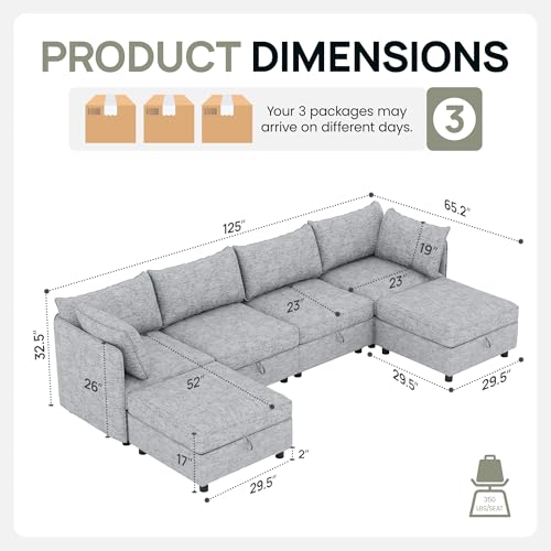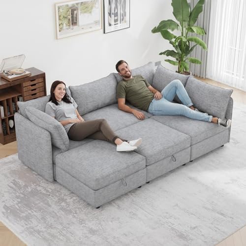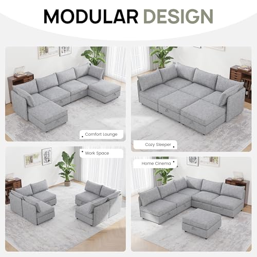 Specification: Oversized Modular 6 Seater Sofa with Removable Covers and Storage, Convertible U, L-Shaped and Sleeper Sectional, Modern Sectional Couch with Ottoman Chaise for Living Room, Bedroom, Apartment, Gray