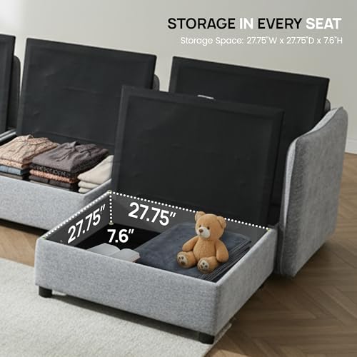 📥 Built-In Storage: Discover a spacious 7.6″ deep hidden compartment under each seat cushion—perfect for organizing throw blankets, pillows, board games, or pet toys. Clutter-free surfaces, always guest-ready.