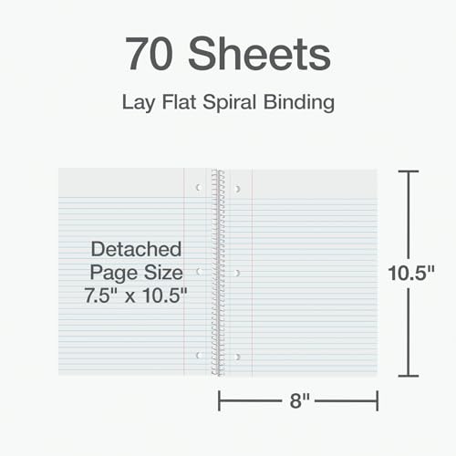 Overall notebook size is 8″ x 10-1/2″; each sheet detaches to a clean 7-1/2″ x 10-1/2″ page; perfect for college notebooks, study notes, and professional use