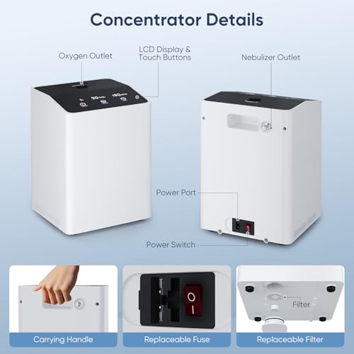 Specification: Oxygen Concentrator Machine, 1-7L Adjustable Continuous Machine, Low Operating Noise Oxygen Generator for Home Use, Complete Accessories