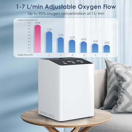 Oxygen Concentrator Machine, 1-7L Adjustable Continuous Machine, Low Operating Noise Oxygen Generator for Home Use, Complete Accessories