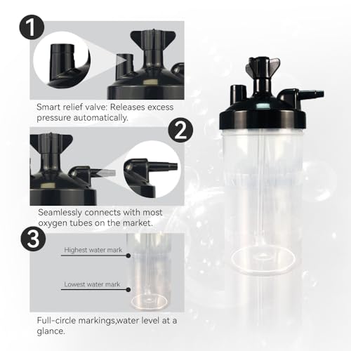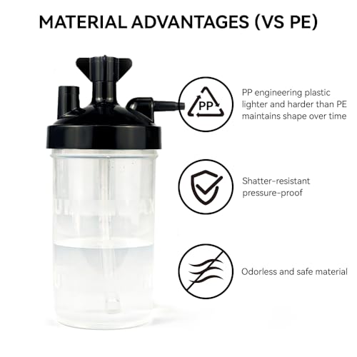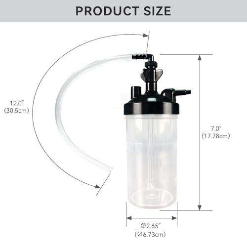 Specification: Oxygen Humidifier Bottle for 1 pk & Right Angle Bottle Elbow & 12” Adapter Tubing -Lightweight Portable Plastic