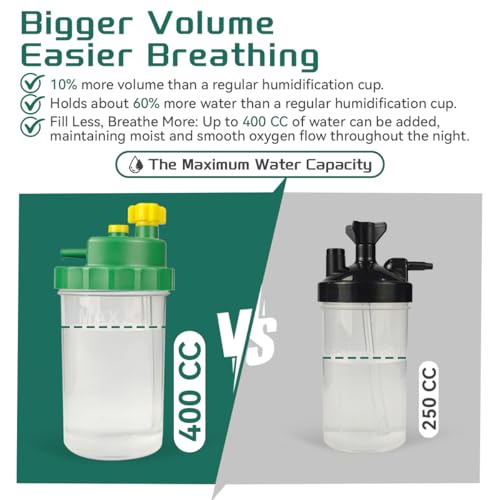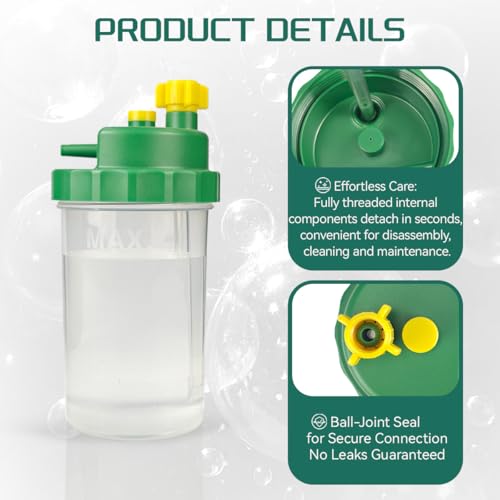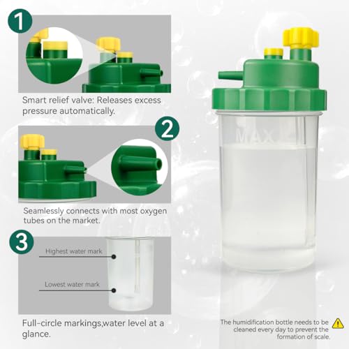Safety: 6PSI pressure relief valve designed to release excess pressure in the cup. In addition, our oxygen water bottle for oxygen concentrator feature a thickened cup body and smooth edge design to prevent unnecessary damage when switching the lid