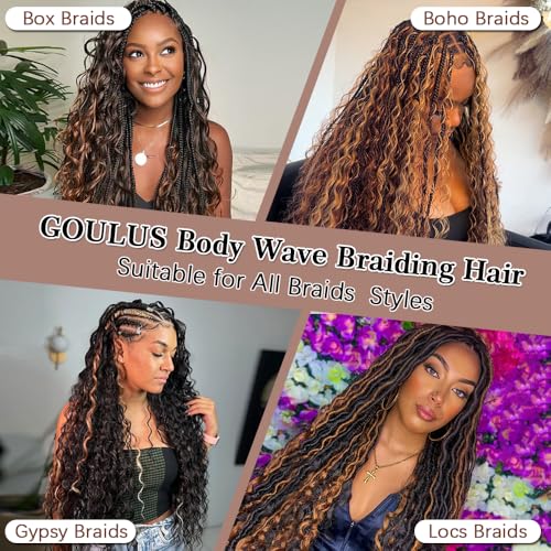 Suitable For All Braids Styles: Body wave bulk hair is suitable for all braids styles, including box braids, french braids, locs braids, boho braids, twist braids, knotless braids and others. If you prefer other texture, Goulus body wave human hair for boho braids can be restyled with curling iron without being melt as it is 100% human braiding hair. Attention: The real color may be different from the color showed on the pictures because of light and different displays.