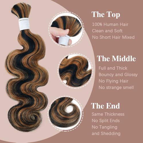 #P1B/30 Body Wave Bulk Human Hair For Braiding No Weft Boho Braids Human Hair Brading Hair Extensions 100g One Bundle Wet and Wavy Human Braiding Hair For Boho Braids(20inch, P1B/30 Body)