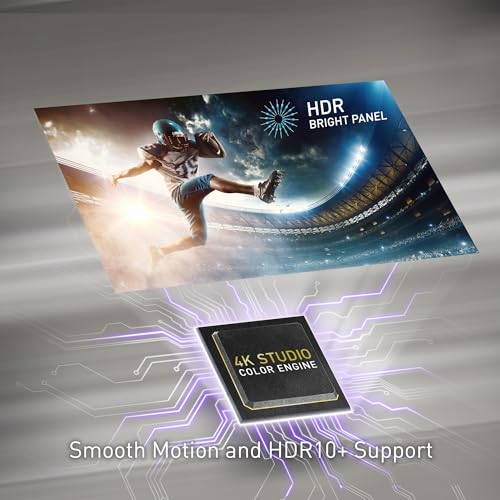 HDR Bright Panel Powered by 4K Studio Color Engine: Enjoy stunning 4K UHD resolution with advanced HDR support, including HDR10+, HDR10, and HLG. The powerful processor ensures smooth motion with MEMC technology.