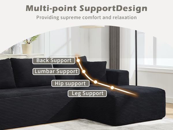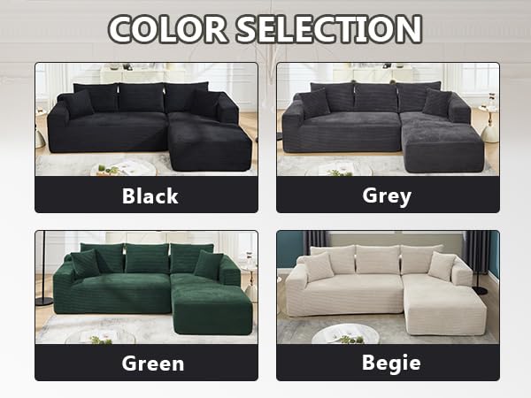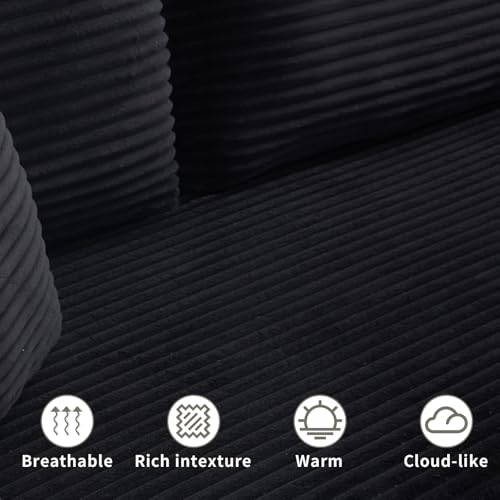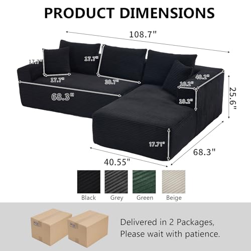 Specification: PELUMY 108.7″ L-Shaped Modular Sectional Sofa with Oversized Chaise, Cloud Couch with Memory Foam, No Assembly Required Sleeper Sofa for Small Space Living Room, Apartment (Black, Corduroy)