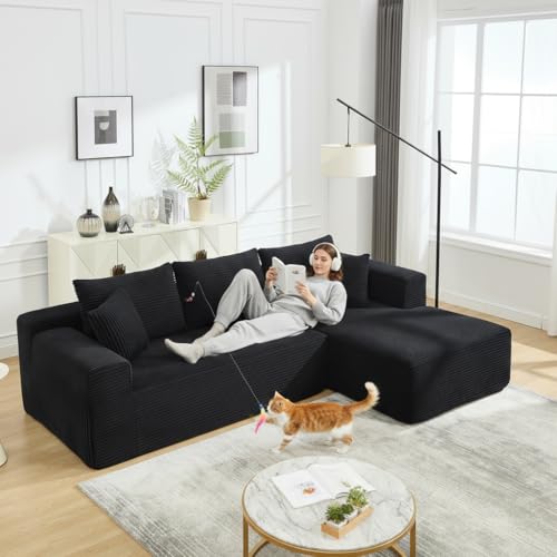 PELUMY 108.7″ L-Shaped Modular Sectional Sofa with Oversized Chaise, Cloud Couch with Memory Foam, No Assembly Required Sleeper Sofa for Small Space Living Room, Apartment (Black, Corduroy)