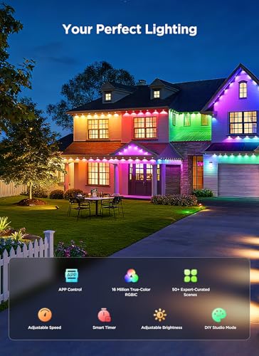 Smart App with Full Control:Take full command with the Smartdawn app! Effortlessly adjust individual LED colors, brightness, speed, and schedules. The auto on/off timer syncs with sunrise and sunset for completely hands-free operation. These lights are perfect for illuminating roof lines, eaves, and architectural features.
