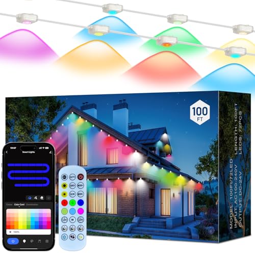 Permanent Outdoor Lights, Outdoor Christmas Lights, DIY RGB+IC Smart Eave Light with App Control, Support Alexa and Google Assistant, IP67 Waterproof, Outdoors Light for Christmas Decorations, 100FT