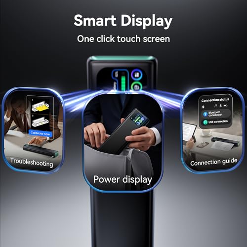 Printer with Smart display : lf you’re a M08F portable printer fans, M08D printer will dazzle you with a host of exciting upgrades, delivering an surprise. M08D portable printer building on the strengths of its predecessor while introducing upgraded smart digital display. The new smart display acts as a considerate printing butler, showing all key info clearly. No more battery anxiety and bluetooth connection! A glance tells youprinter status, enabling you to plan tasks and avoid interruptions. For newbies or those unfamiliar with functions, the display offers step-by-step tutorials and trouble solution. lt helps you get the best print results fast.