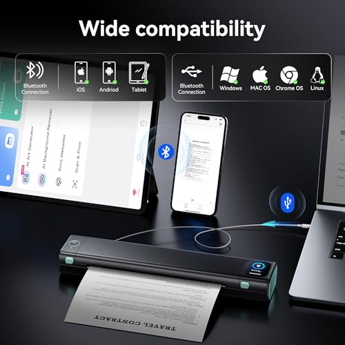 Wireless Bluetooth Printer [High-Compatibility]: Portable Printer support Bluetooth connection. Get the smart app from Google Play or Apple Store for iOS and Android. peel free to Print files, images, web pages from your phone anytime, anywhere.You can also use a USB cable to connect for computer printing; (Note: Computers need to download the driver and print via USB cord, do not support Bluetooth connection)