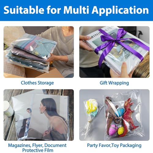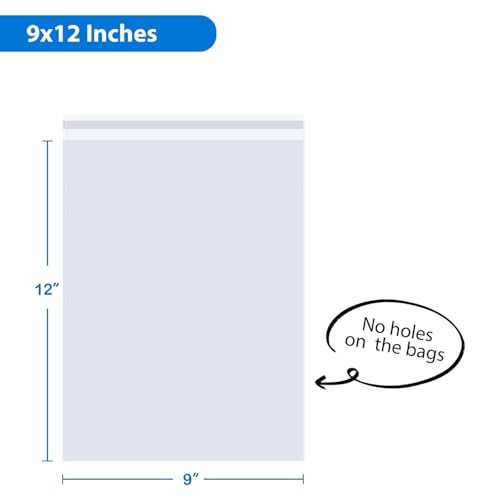 WHAT YOU WILL RECEIVE: Get 100 count of 9″x12″ cellophane bags. These clear cellophane bags are perfect as general clear bags for packaging, offering excellent clarity to showcase your products while keeping them protected and neatly organized.