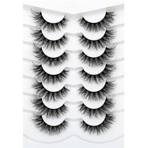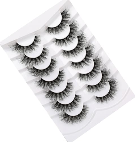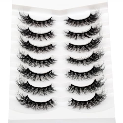 Pooplunch Cat Eye Lashes False Eyelashes Volume Thick Crossed 16MM Wispy Curly Fluttery Faux Mink Lashes 8D Fake Eyelash Strips 7 Pairs Pack