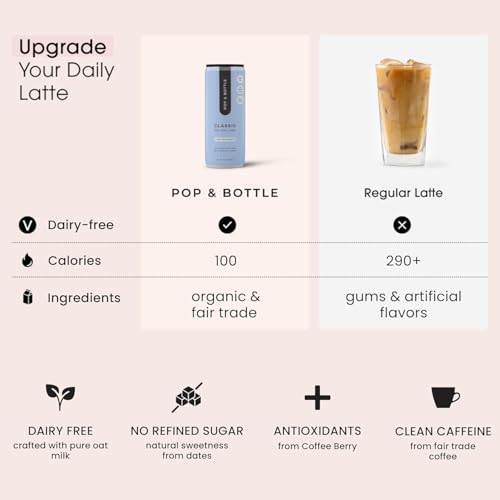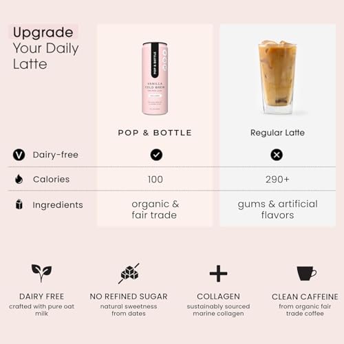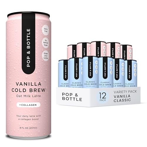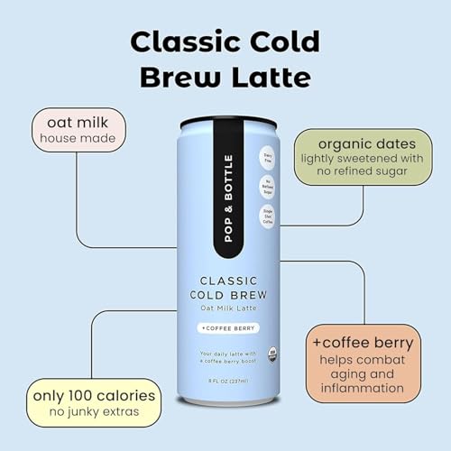 Specification: Pop & Bottle Classic & Vanilla Oat Milk Lattes – Cold Brew, Marine Collagen & Antioxidants, MCT Oil, Organic, Dairy Free, Gluten Free, Lightly Sweetened with Dates – 8 Fl Oz (Pack of 12), 6 Each