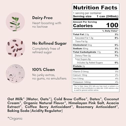 NO REFINED SUGAR – Each 8oz can has 100 calories, 80mg caffeine, and is sweetened only with organic dates. Enjoy cold from the can, over ice, or warm it up on a cold day for a hot latte