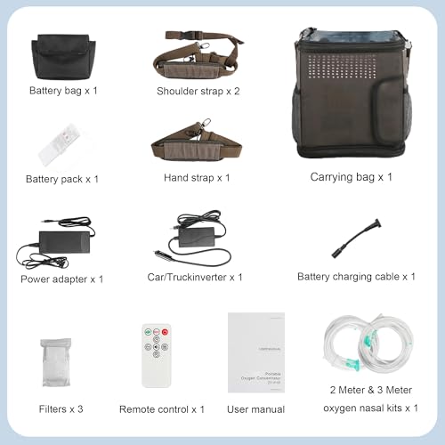 Specification: Portable Oxygen Concentrator Machine for Travel and Home, Continuousand Stable Oxygen, with Oxygen Tubing, Low Noise, Household Oxygen Generator, Car Use/with a Backpack