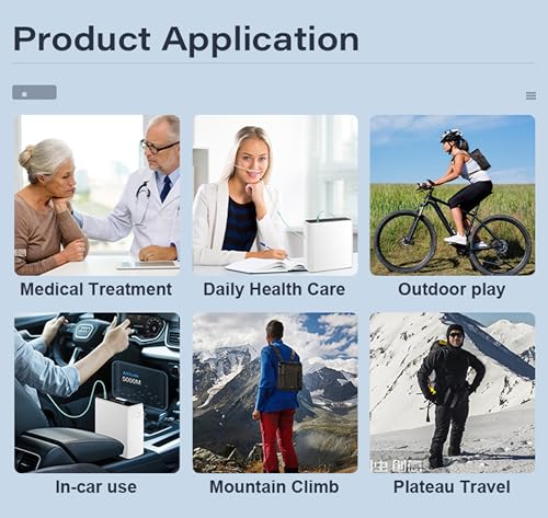 This oxygen generator is compact in size and portable in weight, suitable for various scenarios, including home use, travel use, outdoor use, and even can be connected to the power cord of a car for combined use with the vehicle.