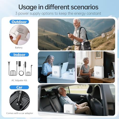 Long cruise experience:This oxygen generator includes an AC adapter kit for indoor use, and a rechargeable battery for outdoor runtime,It also includes a vehicle power cable,A full range of accessories allows you to experience long battery life in various scenarios