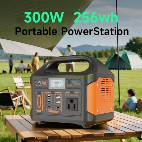 Portable Power Station 256Wh LiFePO4 Battery, 300W (Peak 600W) Backup Lithium Battery, Solar Generator for Outdoors Camping Travel Hunting Blackout