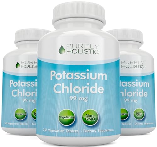 Why Take Potassium? Potassium is an essential electrolyte that works behind the scenes to keep your body functioning properly in a number of ways. Along with protecting your heart and carrying nutrients throughout your body, potassium keeps your muscles moving smoothly and prompts your nerves to send out signals. It also helps you maintain a healthy balance of fluids and electrolytes, while flushing out excess sodium. Trust Purely Holistic Potassium 99mg to help you feel at your very best. Lab verified for potency and purity we also guarantee rapid disintegration of the tablets so you don’t have to wait long to feel the benefits. Why Buy Purely Holistic Potassium Chloride? 1 YEAR SUPPLY – We offer 365 tablets per bottle, which is equivalent to a full year’s supply. HIGH STRENGTH – Each serving delivers 99mg of Potassium Chloride per tablet.