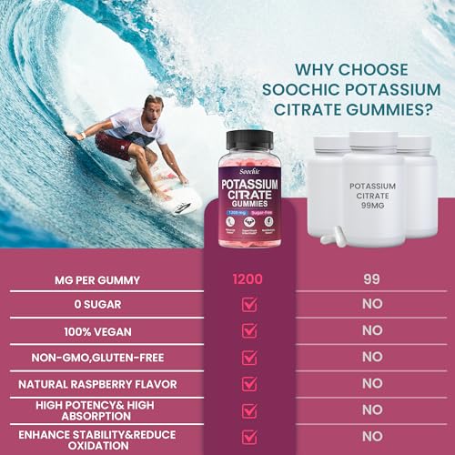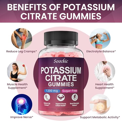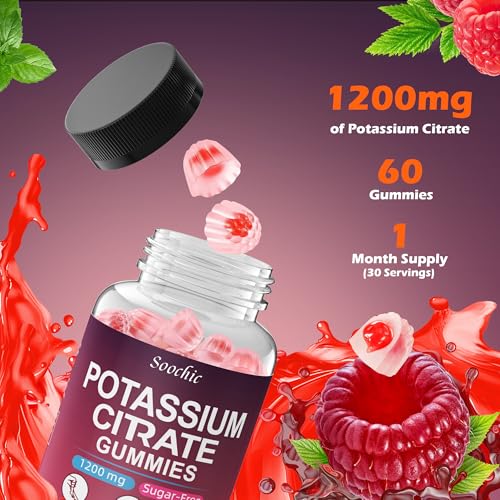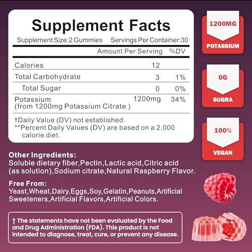 Specification: Potassium Citrate Gummies – 1200mg Chewable Potassium Supplement for Men & Women – Supports Leg Cramps & Muscle Health – Vegan, Gluten Free, Sugar Free – Raspberry Flavor (60 Count)