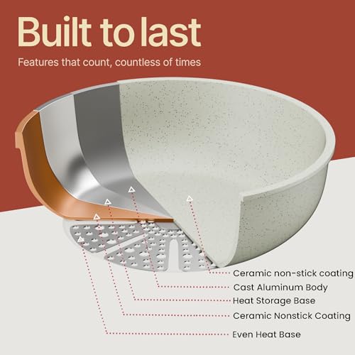 NONSTICK & DURABLE – Crafted with PFOS and PFOA-free ceramic-granite coating that’s safer for health and 10x more nonstick than standard cookwares, ensuring easy food release and cleanup. The coating can also withstand temperatures for up to 400°F/205°C.