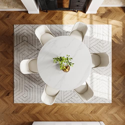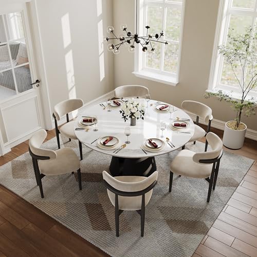 Specification: POVISON 59″ Round Dining Table for 6, Glossy White Sintered Stone Dining Tabletop with Black Carbon Steel Base, Circle Kitchen Table for Dining Room (Table Only)