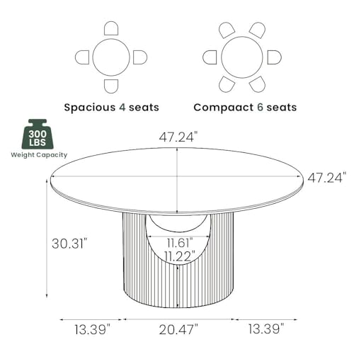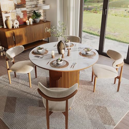Specification: POVISON Round Glossy White Dining Table for 4, 47″ Sintered Stone Tabletop Dining Table with Solid Wood Stable Crafted Base (Table Only)