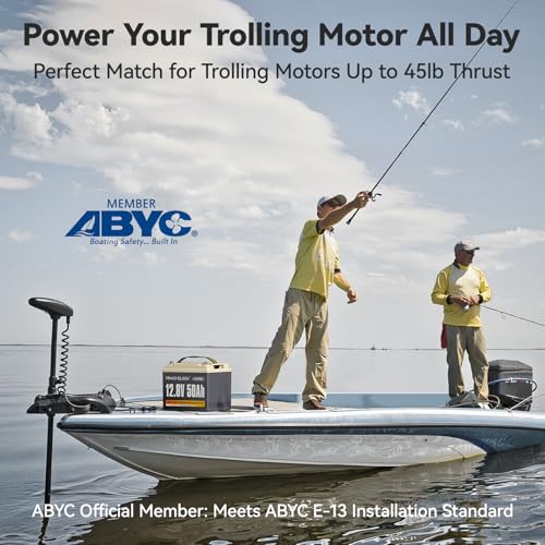 Specification: Power Queen 12.8V 50Ah LiFePO4 Battery Upgrade, Grade A Lithium Battery Cells with 50A BMS, Up to 15000 Cycles, Portable & Lightweight for Trolling Motor,Fish Finder Boat,RV,Solar