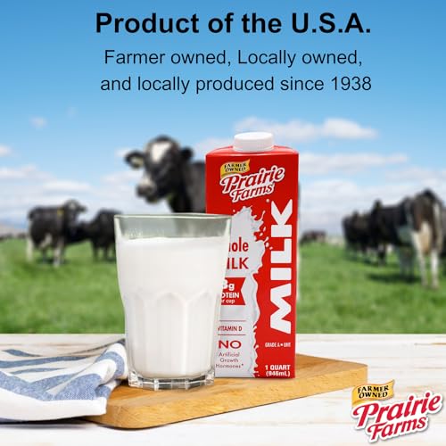 Specification: Prairie Farms Whole Milk, Shelf Stable, Boxed & Ultra Pasteurized (UHT), Vitamin D White Milk – Preservative and Hormone Free, Gluten Free, Kosher, Made in USA – 1 Quart (4 Pack)