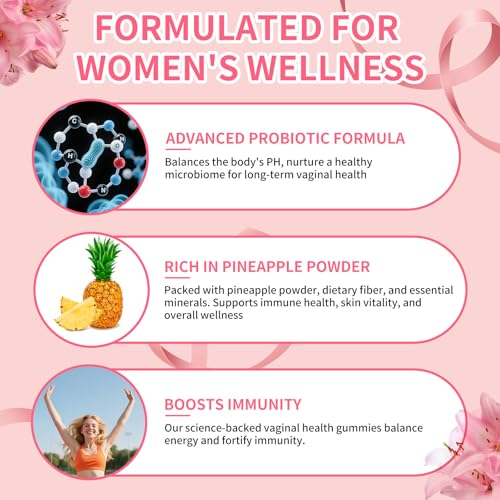 PREMIUM NATURAL INGREDIENTS: The premium feminine balance gummies rich in vitamins, dietary fiber, and essential minerals needed by the body, which supports vaginal health, freshness, odor, and healthy pH levels. Each serving also includes antioxidant vitamin C and real pineapple per serving
