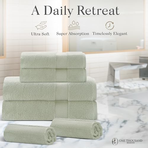 Premium Staple Cotton Bathroom Towel Set – Sage Green 600 GSM 6-Piece Luxury Bath Towel Set 1 Stripe – 2 Bath Towels, 2 Hand Towels & 2 Washclothes Set – High Absorbent & Quick Dry for Gym, Spa, Hotel