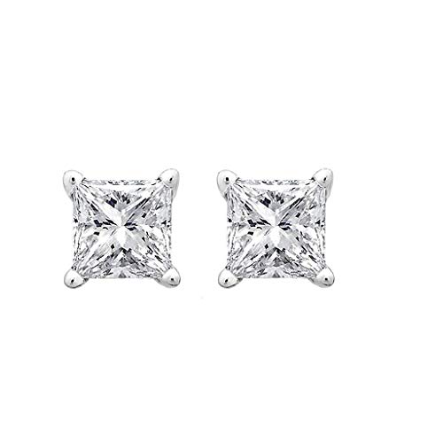 Princess cut Diamond stud Screw Back 14K White Gold (0.50ct, Clarity-I3)