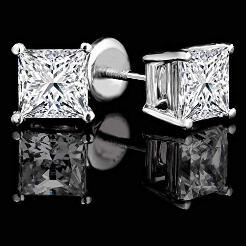 Specification: Princess cut Diamond stud Screw Back 14K White Gold (0.50ct, Clarity-I3)