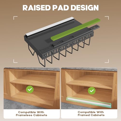 【Stability & Sturdy】: The pots and pans organizer is made of high quality material, durable. The stability of the pull-out organizer will not be tilted by heavy pans, and the wobble-free organizer allows you to get in and out of pots and pans without worrying about the shelves moving or falling. Flexible to under cabinets, pantry shelves, deep drawers, and countertops, helping transform them into a neater space.