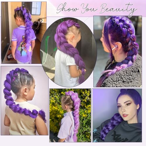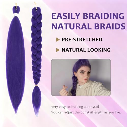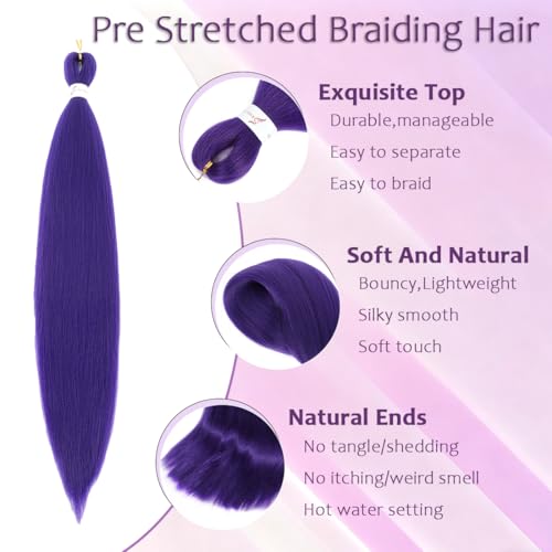【Pre Stretched Purple Braiding Hair Extensions Material:】 Braiding hair pre stretched made of premium low temperature flame-retardant synthetic hair, purple braiding hair soft and natural, similar to the touch and handle of your human hair, which will make the braiding process easier and comfortable.