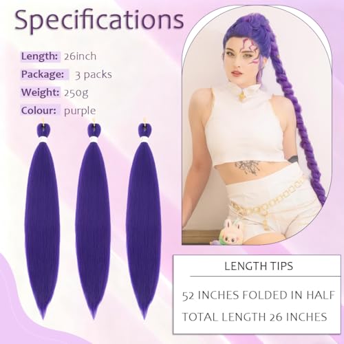 Specification: Purple Braiding Hair Extensions 3 Packs Pre-Stretched Braiding Hair for Women Purple Hair Extensions for Braids Cosplay Halloween Costume (26 Inch D-Pur)